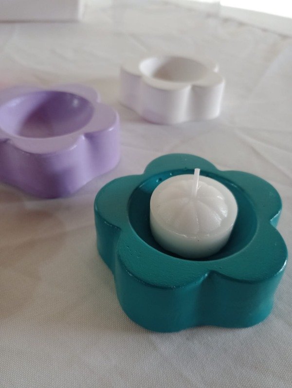 Porta vela en forma de flor, realizado en yeso